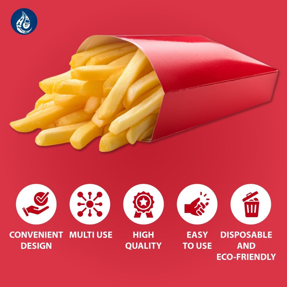 Constructed from sturdy, food-grade cardboard, they are both grease-resistant and eco-conscious. Designed for quick disposal without compromising performance, they help streamline service while reducing clean-up time. Each pack includes 100 disposable holders—ideal for businesses that serve high volumes of meals.